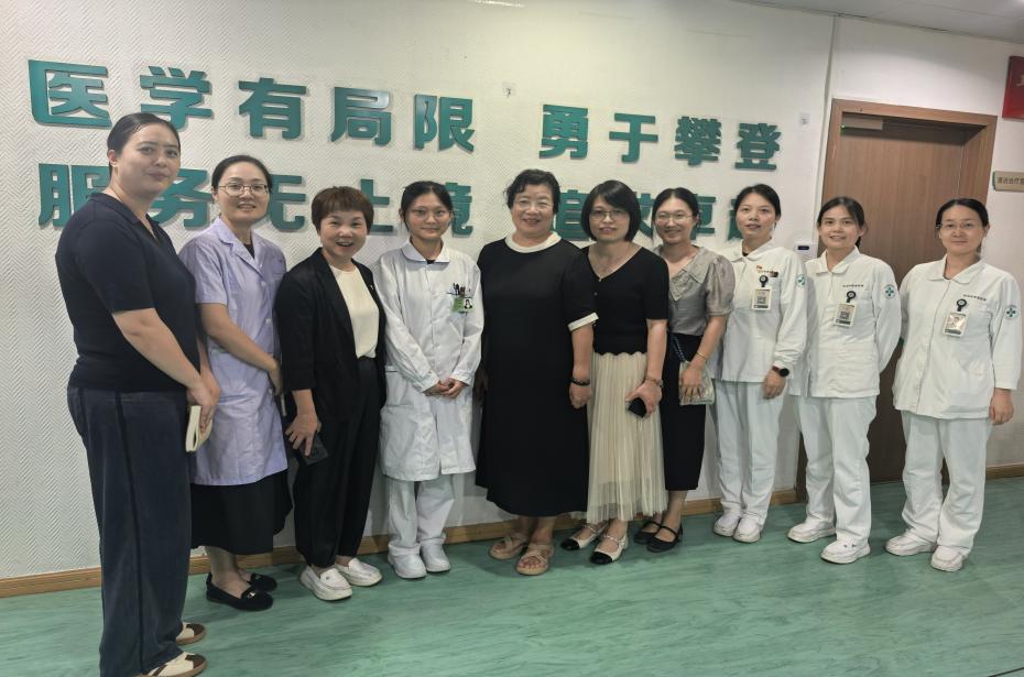 会议结束后,在李儿的陪同下,祖淑梅一行前往急诊科和消化内科病区,亲切看望正在该院实习的2023级护理专业学生。祖淑梅关切询问同学们对倒班安排的适应情况、实际操作中的技能难点以及日常生活需求;应佳盈叮嘱大家要勤于记录和反思典型案例、重视操作细节的复盘与提升;李儿也鼓励同学们主动提问、大胆实践。