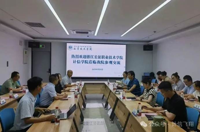 为深入学习借鉴兄弟院校的先进办学经验,进一步推动学院专业建设、产教融合与党建工作的提质增效,9月25日下午,计算机与信息技术学院院长梅灿华率领专业教学团队及党建工作骨干一行十人,专程前往浙江经济职业技术学院数字技术学院进行专题交流学习。此次活动受到了浙江经济职业技术学院数字技术学院院长楼建列、党总支书记肖紫嫣及相关专业负责人的热情接待,双方就多领域合作展开了深入而细致的研讨。