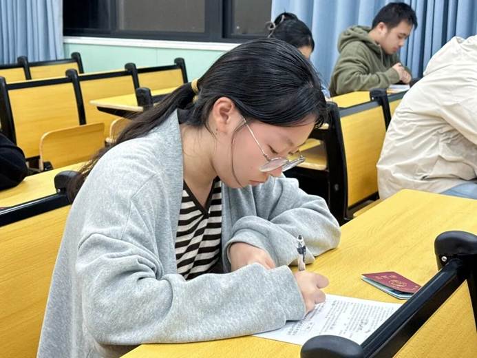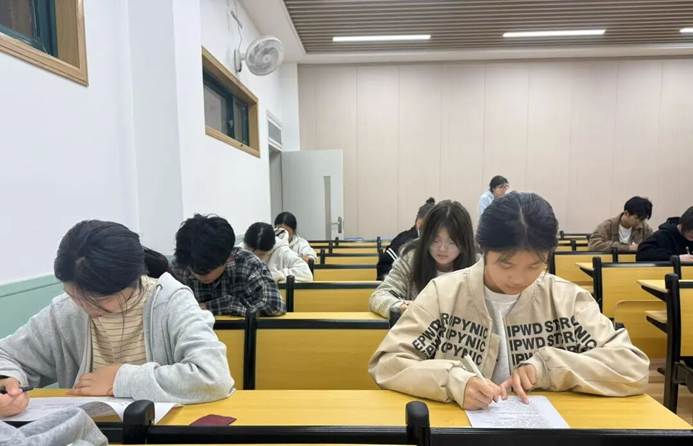考前,学员们携带学生证或身份证提前15分钟抵达考场,自觉上交手机,严格遵守考试纪律。考试期间,全体学员全神贯注、伏案作答,展现出扎实的学习成果与端正的应考态度。监考人员也秉持严谨负责精神,严格执行监考规程,全程维护考场秩序,为考试提供了严肃、公正的环境。学员的专注在这一刻成为了一道绚丽的风景线。