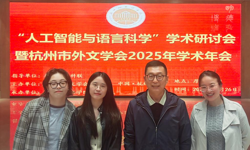 10月26日,以“人工智能与语言科学”为主题的2025年杭州市外文学会年会在浙江外国语学院举行,人文与管理学院公共外语教研室杨成青、霍然、张燕婷、周舟四位老师参加了本次会议。