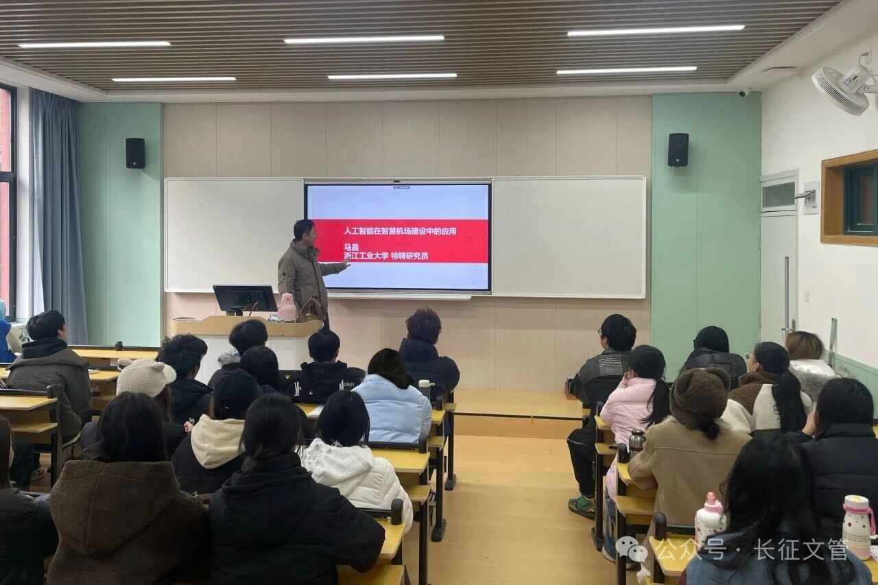 近日,浙江工业大学特聘研究员马晨应邀为我校空中乘务专业学生开设了主题为《人工智能技术在智慧机场建设中的应用》的讲座。此次讲座旨在拓展专业视野,紧跟民航业智能化发展前沿,提升学生对未来智慧民航场景的认知与适应能力。