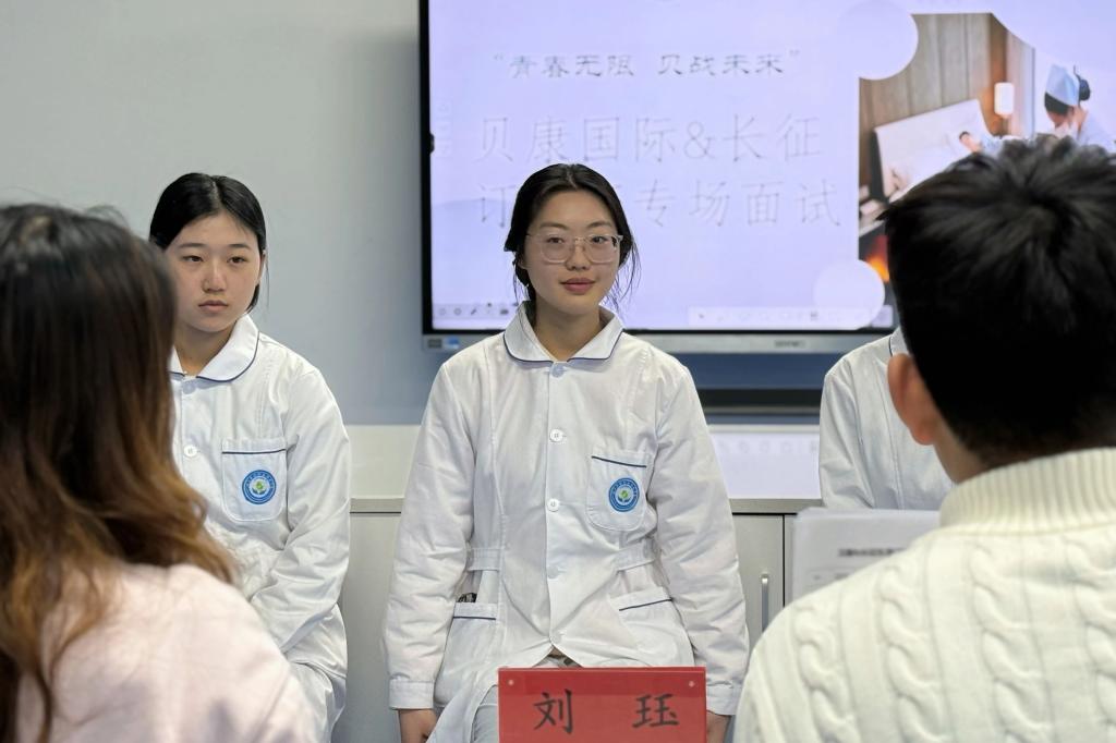 为深化产教融合,推动校企协同育人,1月20日,护理学院成功举办首届贝康健康科技集团有限公司“订单班”专场面试活动。本次招聘面向学院护理专业三年制、五年制以及健康与社会照护、婴幼儿护理等方向的学生,由贝康健康科技集团校招经理谢耀杨与学院专任教师共同组成评审团,开展人才选拔工作。