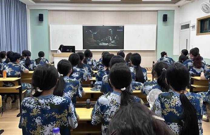 活动期间,各教室银幕上的英雄身影定格瞬间,熟悉的旋律萦绕耳畔,深植民族血脉的热血与信仰,在不经意间触动新生们的内心,让人热泪盈眶。