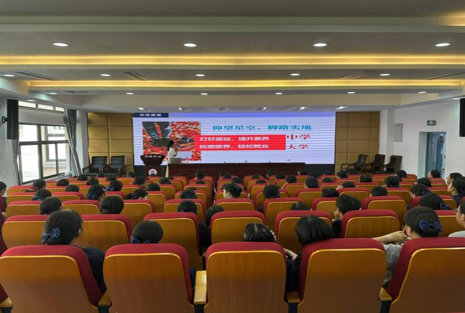 活动以职业启蒙讲座开场。张韩晓老师作《走进护理高职,启航职业新程》专题分享,结合动态PPT与实景视频,系统介绍高职阶段育人特色。她指出,学校拥有模拟病房、ICU仿真训练室等10余个高标准实训基地,并与70余家单位开展校企合作,为学生提供从理论到实践的全过程培养。生动的展示令同学们沉浸其中,纷纷提笔记录,眼中满怀期待。