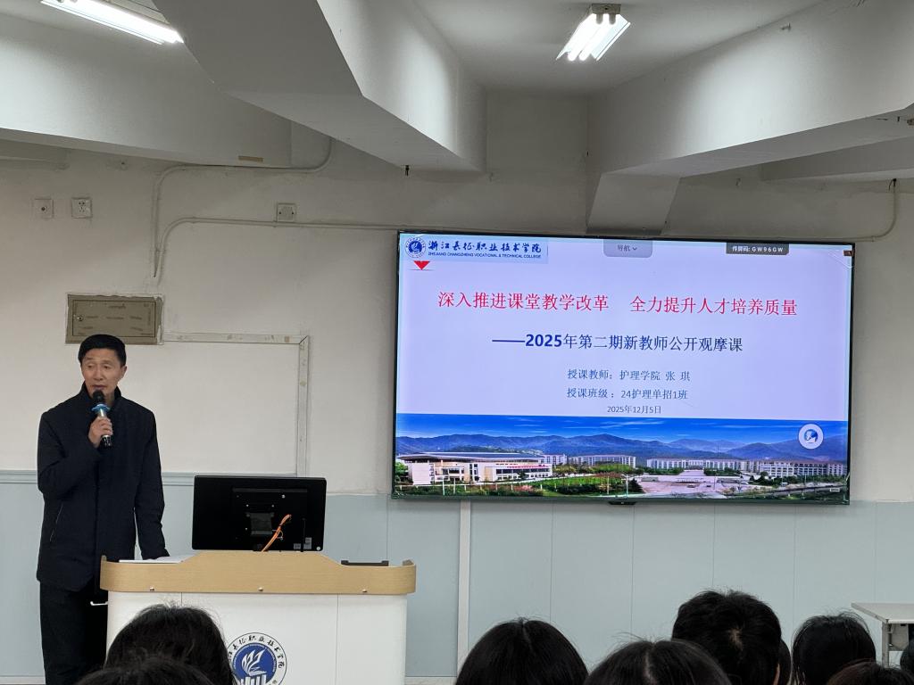 为推进课堂教学改革,提升人才培养质量,12月5日下午,学校督导室在第二教学楼举办2025年第二学期校级公开观摩课。护理学院张琪老师主讲,为24护理单考单招1班带来题为《心脏保卫战——冠心病病人的护理》的教学示范课。副校长吕振合、督导处处长张崇利、护理学院领导及相关教师参加观摩。