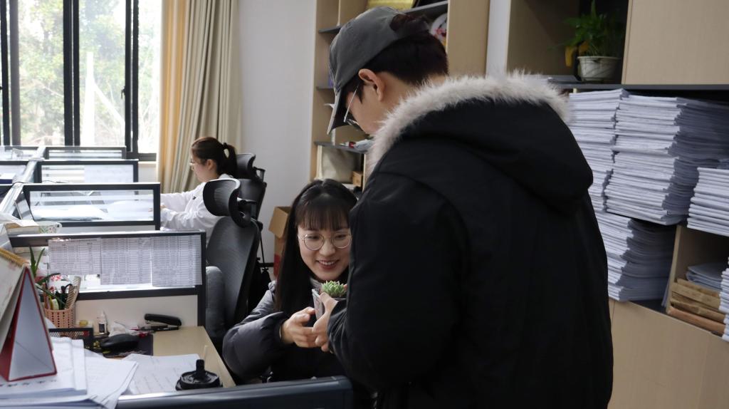 活动中,学生代表手捧生机盎然的多肉,将一份份心意送至老师们的办公桌前。小小的绿植,承载着春日的美好与真挚的祝福,为忙碌的办公空间添上一抹温柔与生机。老师们笑意盈盈,在暖意融融的氛围中,感受着来自学院与学子的关怀。