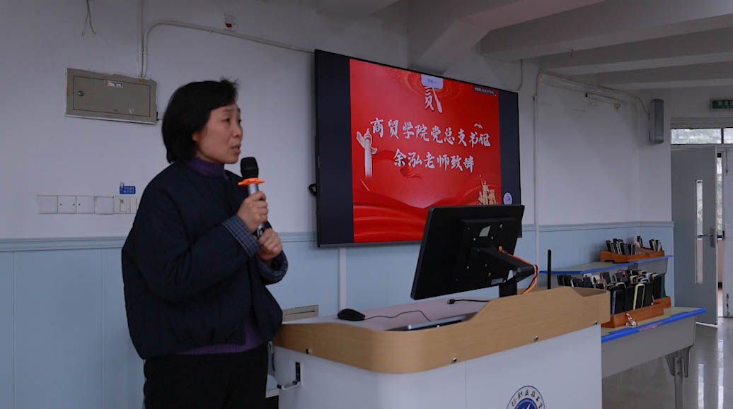 随后,商贸学院党总支书记余泓老师发表致辞。余书记对本期81名学员的加入表示热烈欢迎,并寄予深切期望。他叮嘱全体学员,要将入党动机从“荣誉光环”真正转变为“责任担当”,必须深入学习党的理论知识,以合格党员的标准严格要求自己,争取早日达到党员标准。