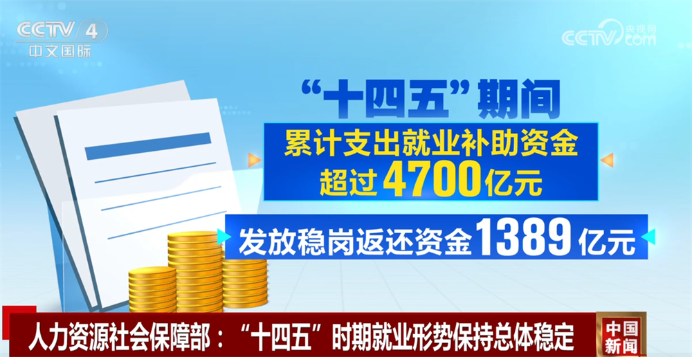 “十四五”期间,我国深入实施就业优先战略,出台一系列就业支持政策,累计支出就业补助资金超过4700亿元,发放稳岗返还资金1389亿元。截至今年8月底,城镇新增就业累计达到5921万人,超额完成5500万人的目标任务。就业形势总体稳定。