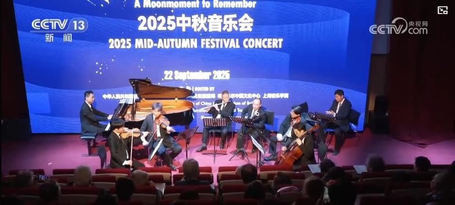 2025“天涯共此时”中秋音乐会 在比利时的布鲁塞尔中国文化中心举行,中比各界代表等160余人参加活动。来自上海音乐学院的音乐家们演绎了《花好月圆》等经典曲目。