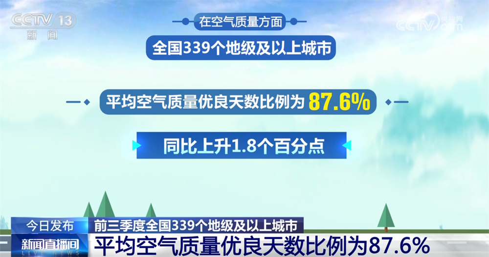 央视网消息:生态环境部29日举行例行新闻发布会,公布了1—9月全国空气和地表水环境的质量状况,其中多项指标持续改善。