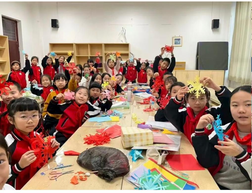 图为松原市逸夫小学的学生们展示冰雪主题剪纸作品(受访者供图)