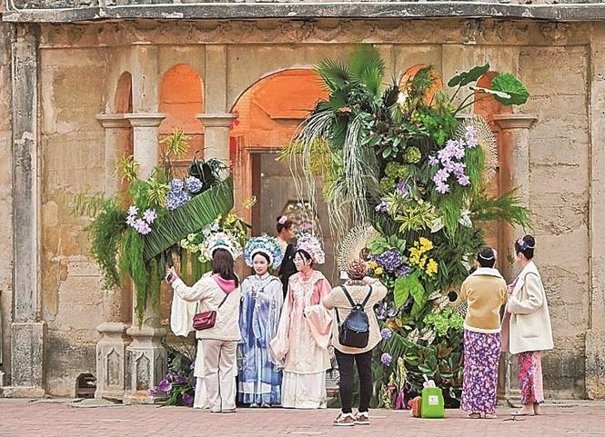 晨曦透过梧林传统村落彩色玻璃窗,在百福墙上投下斑斓光影;身着娘惹服饰的少女从番仔楼的雕花门廊前翩然走过……这样的画面,正是福建晋江的日常。