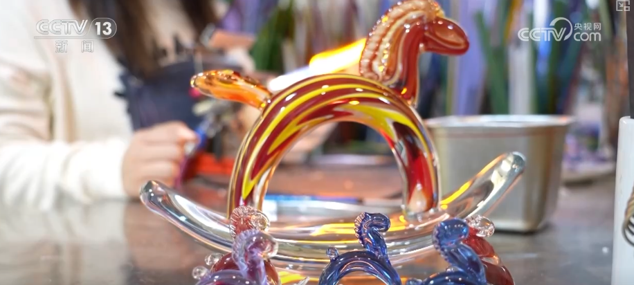 在山东淄博市一家琉璃企业的生产车间,师傅们正忙着赶制琉璃马生肖作品。1400℃的高温下,琉璃料在吹制、塑形中逐渐勾勒出骏马的灵动身姿。