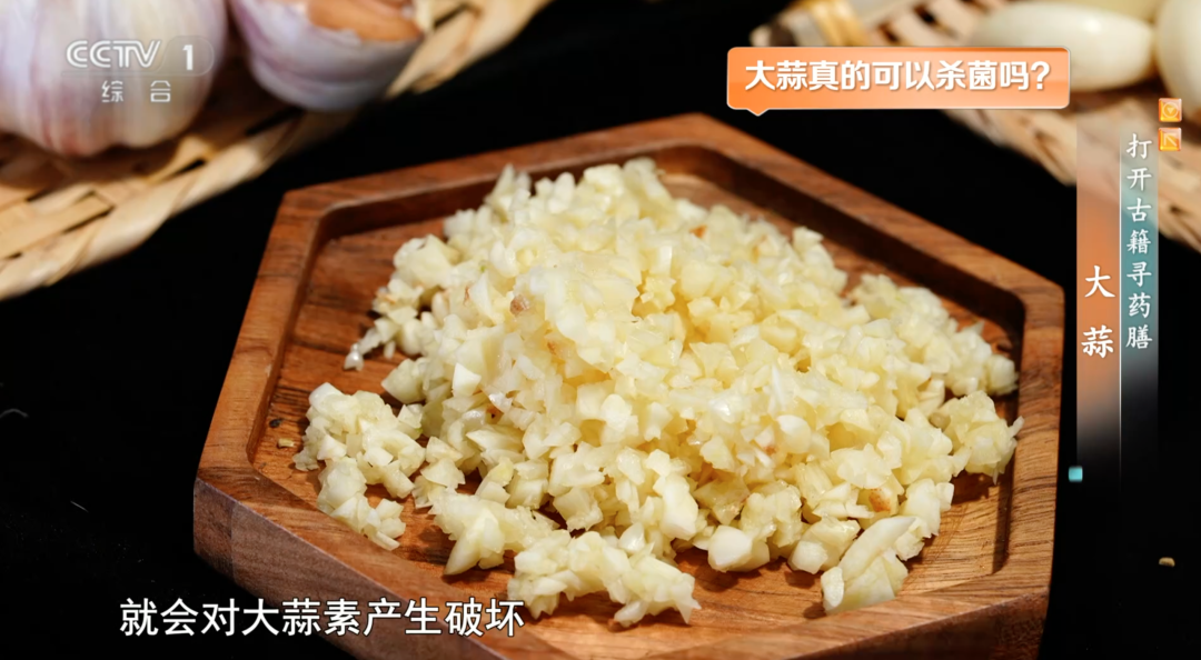 新鲜大蒜中并没有大蒜素,当大蒜组织被破坏(如切割或挤压),其内在物质受到外力作用后才会生成大蒜素。并且大蒜越碎,产生的大蒜素就越多,所以最好把大蒜捣成蒜泥,静置15分钟后再食用,让大蒜素充分生成。